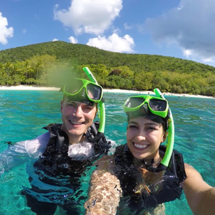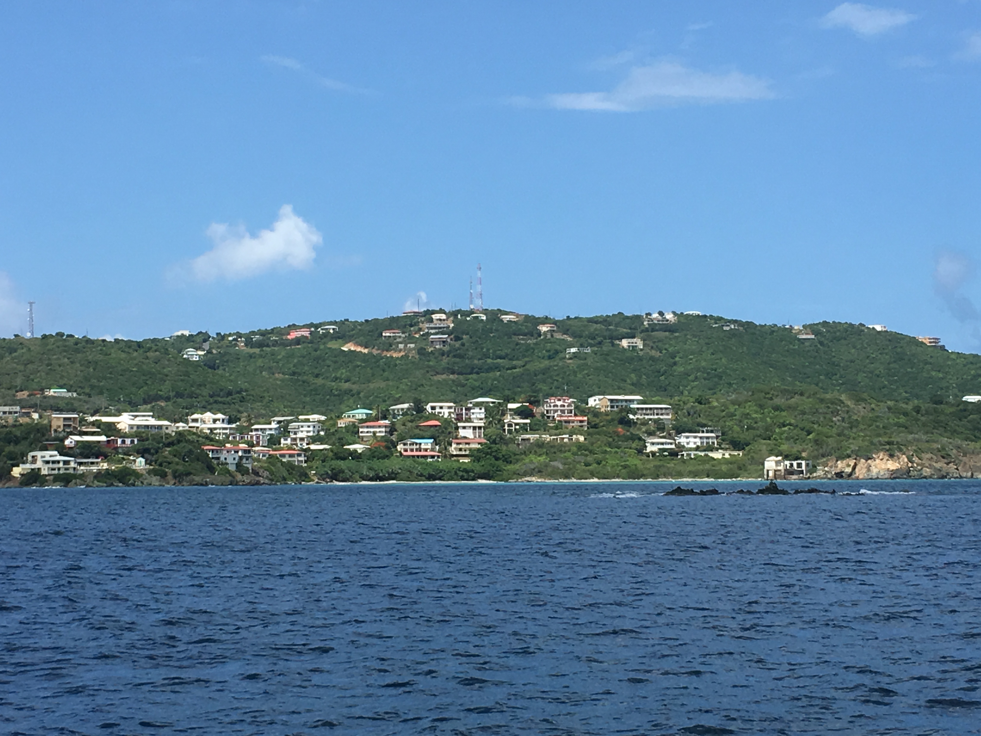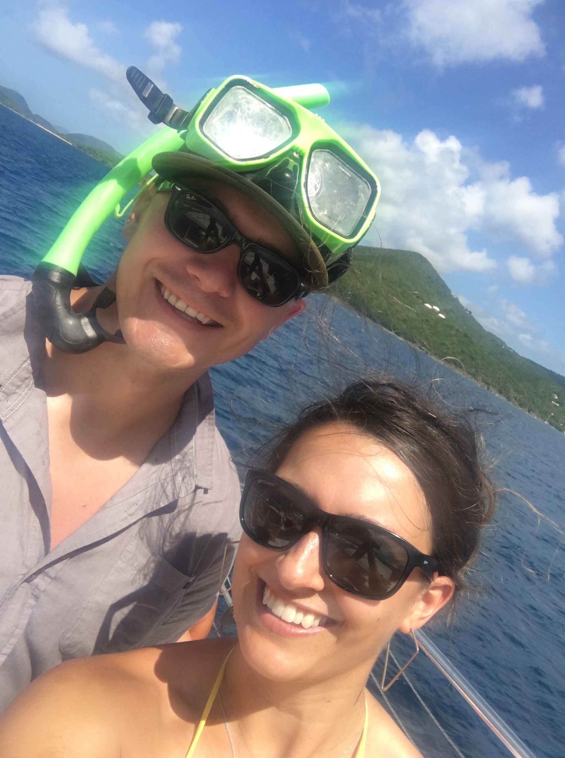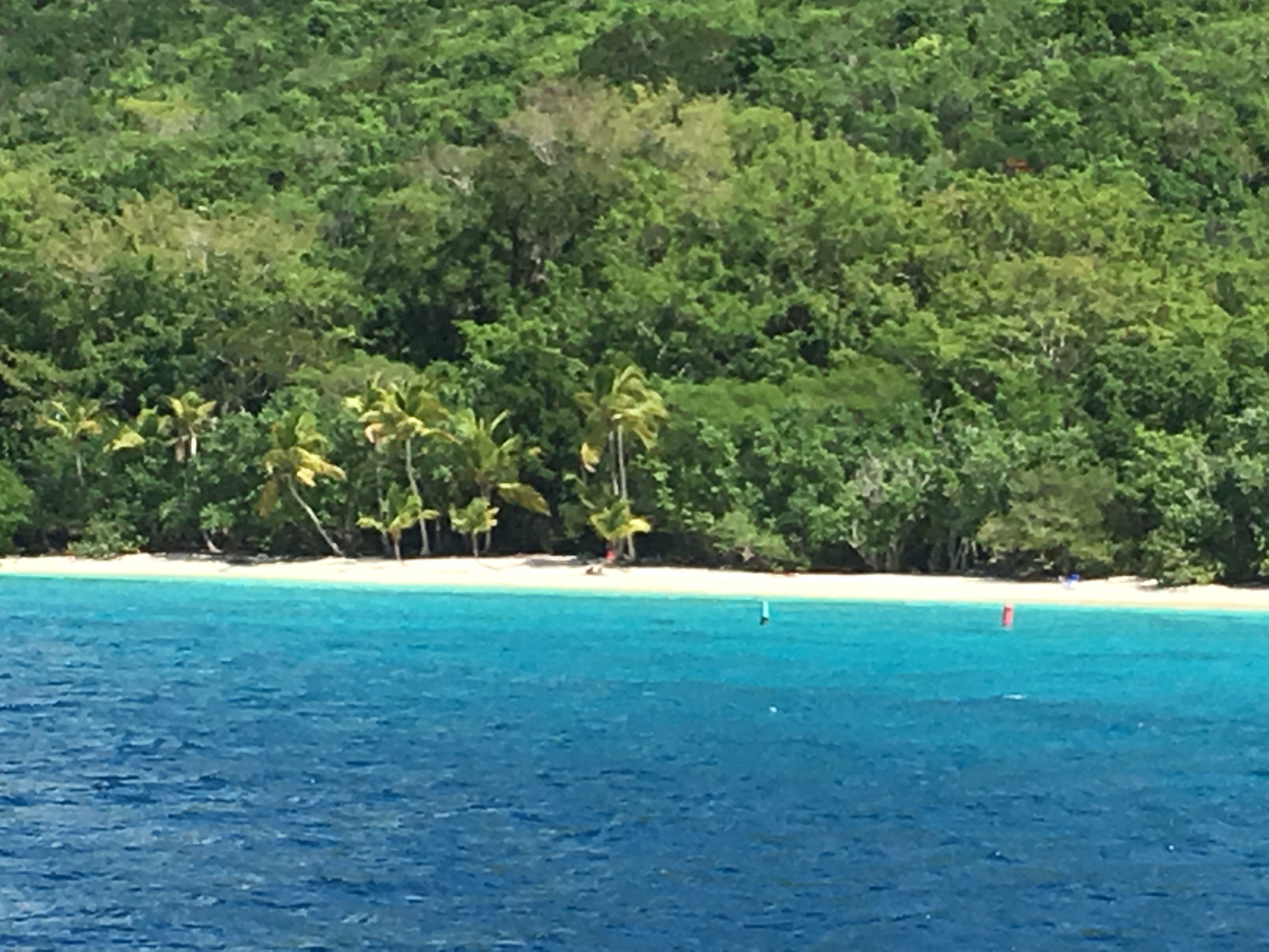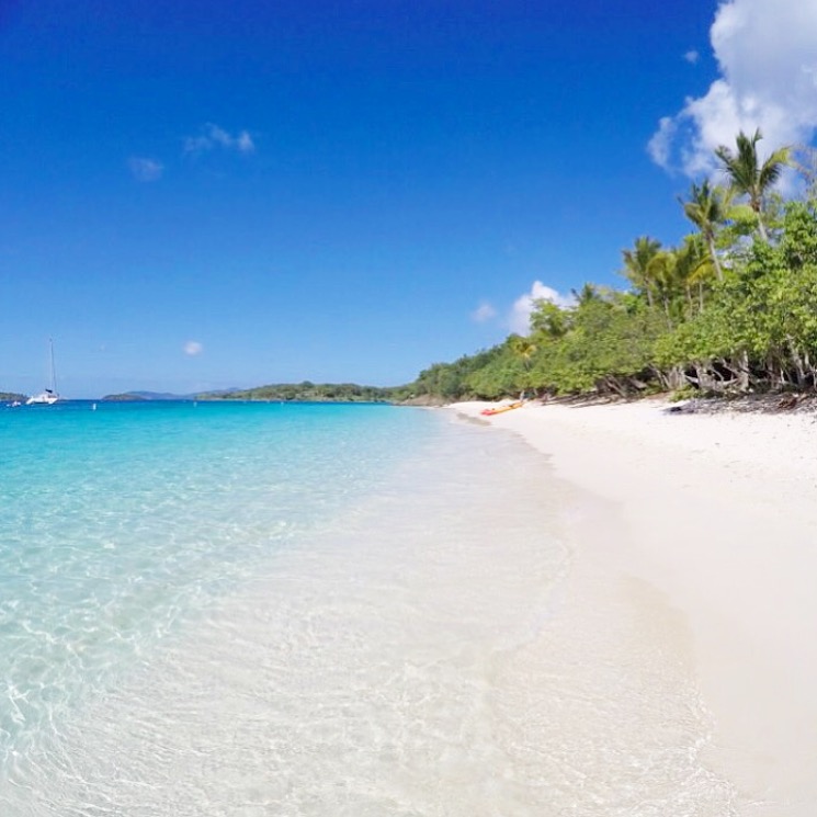After meeting up with our excursion group a while later, we rode an open-air bus across the island to our catamaran. The island roads were bumpy and windy, but offered beautiful views as we reached the top of the mountain and made our way back down towards the shore. Our catamaran crew greeted us with laughs and jokes as we boarded and began to set sail. While we couldn’t drink until after snorkeling, we made friends and took in the sights of the gorgeousness around us. Sailing away from St. Thomas, we could see most of the US and British Virgin Islands. As we neared St. John, our adventurous crewmate from Michigan explained that the Rockefeller’s used to own the island and eventually sold it back to the government, but not without a few stipulations. The island was to remain a National Park with less than 6,000 residents and upon arrival, its uninhabited landscape was pristine. We anchored at Honeymoon Beach, grabbed our snorkel gear and jumped off into the crystal clear water. Although there weren’t many fish, we saw a few Dori’s, lots of sea urchins and fan coral and were surprised with a couple sting rays too! They were amazing to see in their natural habitat and without knowing there were any around! I snapped a bunch of photos and videos with the GoPro and am so happy to have that. We swam up to the beach and took some photos before heading back to the catamaran and grabbing some rum punch topped with champagne for the sail back to St. Thomas. The beaches were stunning, the water was gorgeous and we had a blast!