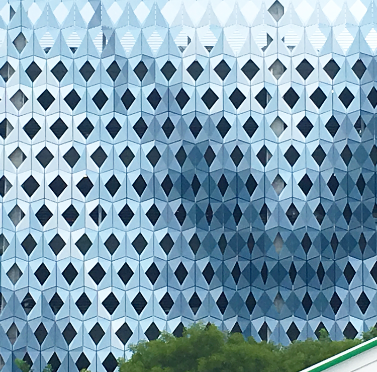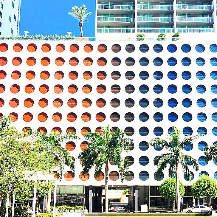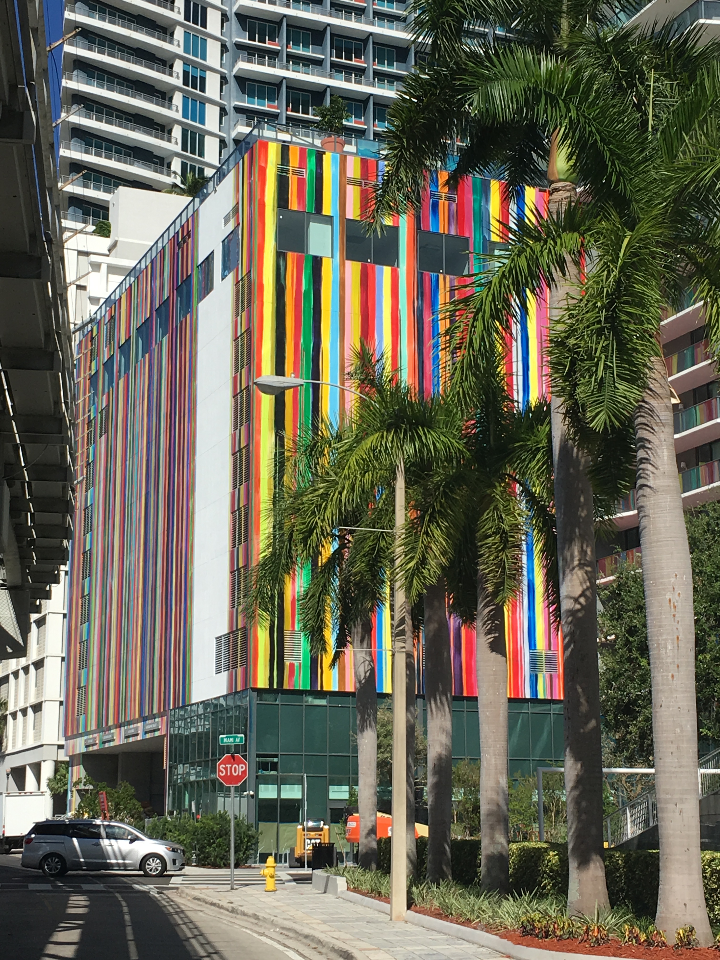 From there, the Design District beckoned. There’s inspiration everywhere you turn, whether it’s on the side of a parking garage in the materials used with textures and colors or the repetition of balconies on glassy, high-rise condos to create an asymmetrical pattern. There’s incredible dimension to everything and unique takes on what’s normal- like the perforated, metallic side of the parking garage that glistened in the sun and became an instant favorite. Large wall art murals take up entire sides of buildings- you can barely even notice Rob at the bottom of the urban jungle mural! Throughout different areas, you’ll see buildings covered in all colors– and some all on the same building! Multi-color and fun-loving, the creative geniuses behind these buildings helped Miami capture my heart.