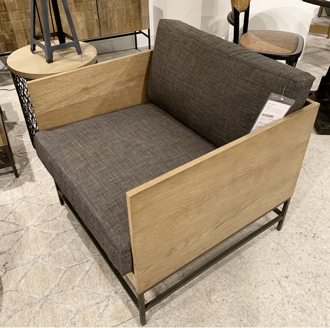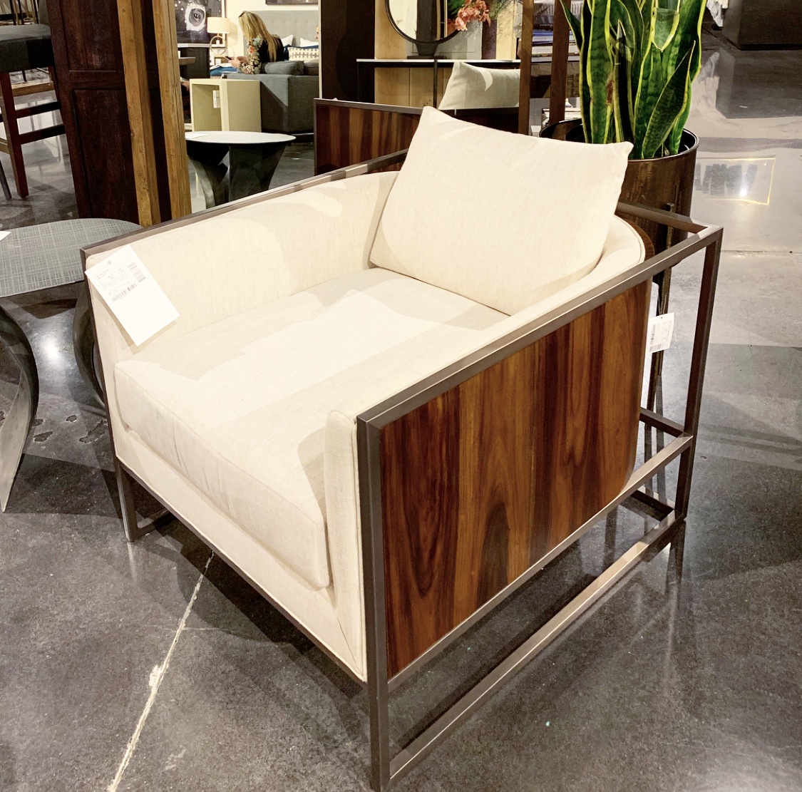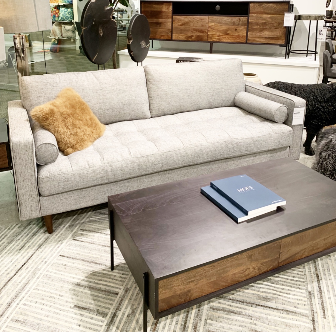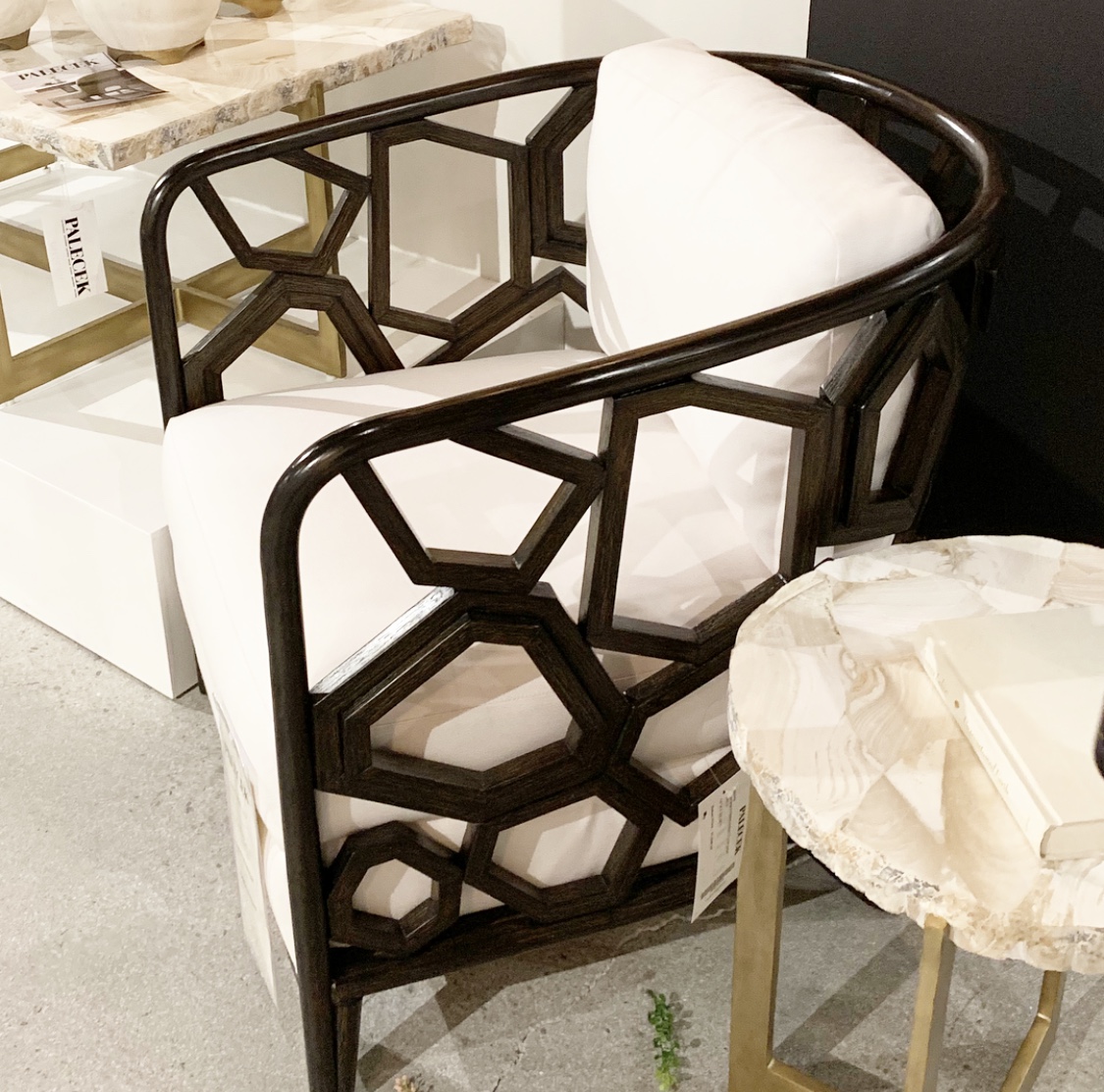 Furry white ottoman? Check. Furry bench? Check. Furry pillows. Double check. And in so many colors! Let’s just say there wasn’t a shortage of fur. There were blankets, rugs and chairs too. We love these as accents to cozy up a room! The hides we found were gorgeous too! Whites, cognacs, blacks, and everything in between. I’ve always been a sucker for hide rugs and ottomans and loved seeing new takes on one of my faves! Chairs and contrast ottomans mixed with wood or polished with a metal base.