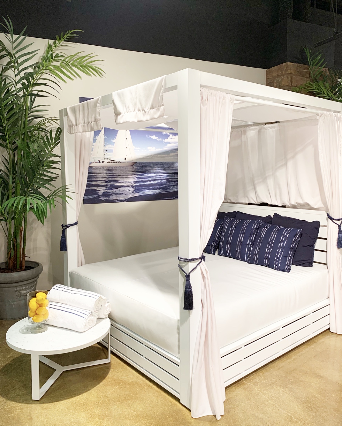I love canopy beds and both of these are beautiful– one perfectly suited for the outdoors (top right) and the other wrapped in a gorgeous finely woven lampakanai rope in a white sand finish— ahhh love! You’ve seen most of the rest, but they’re recapped here along with a few other coffee tables, nightstands and fun things!