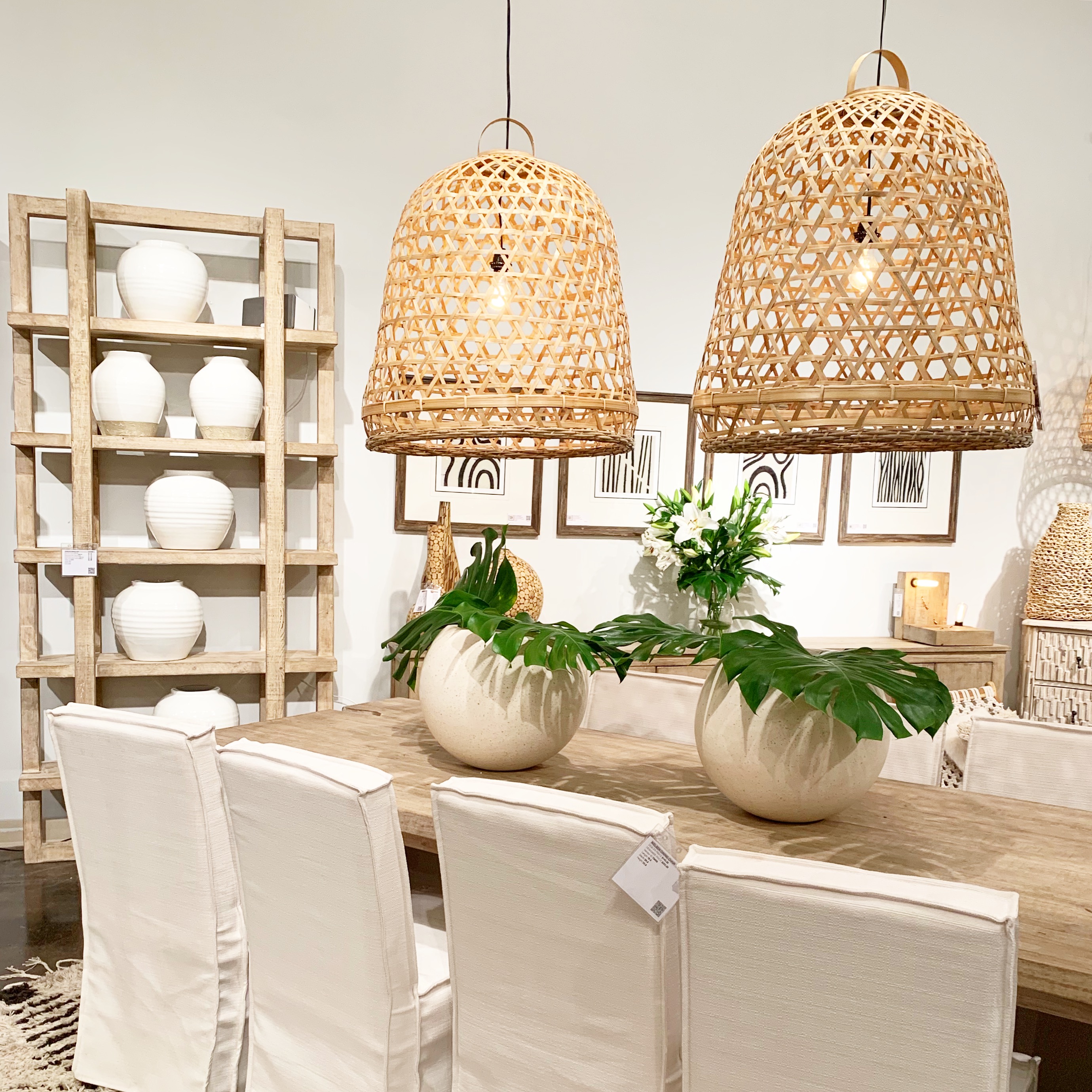 These were literally everywhere! All shapes, sizes and slightly varying finishes of woven light fixtures hung from the ceilings. From boho to contemporary, these ever-popular fixtures are the perfect choice to add a warm, natural style to your space!