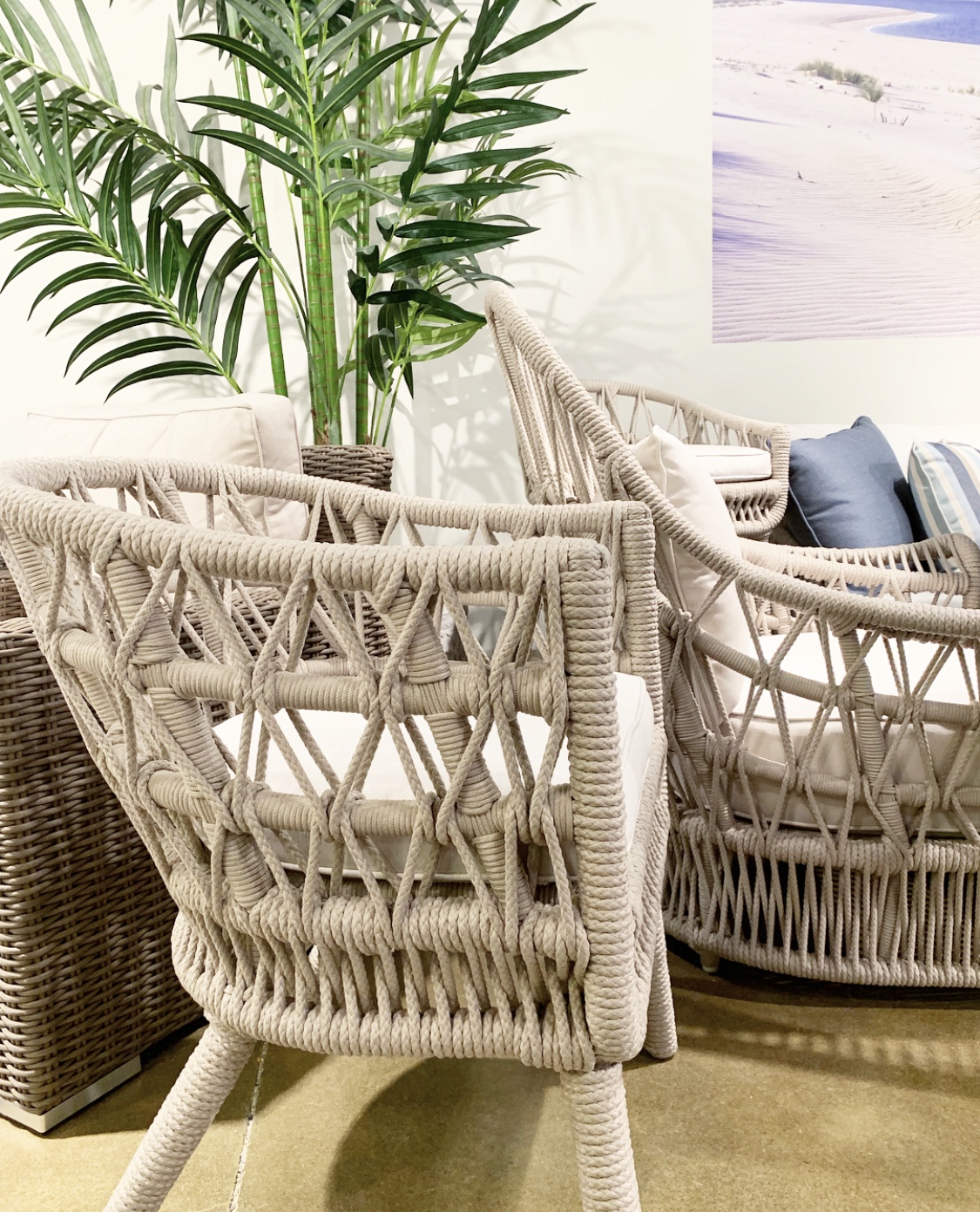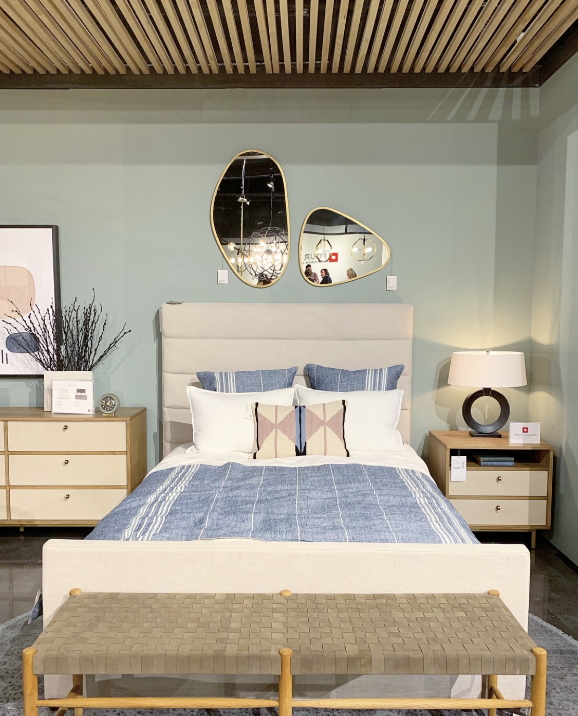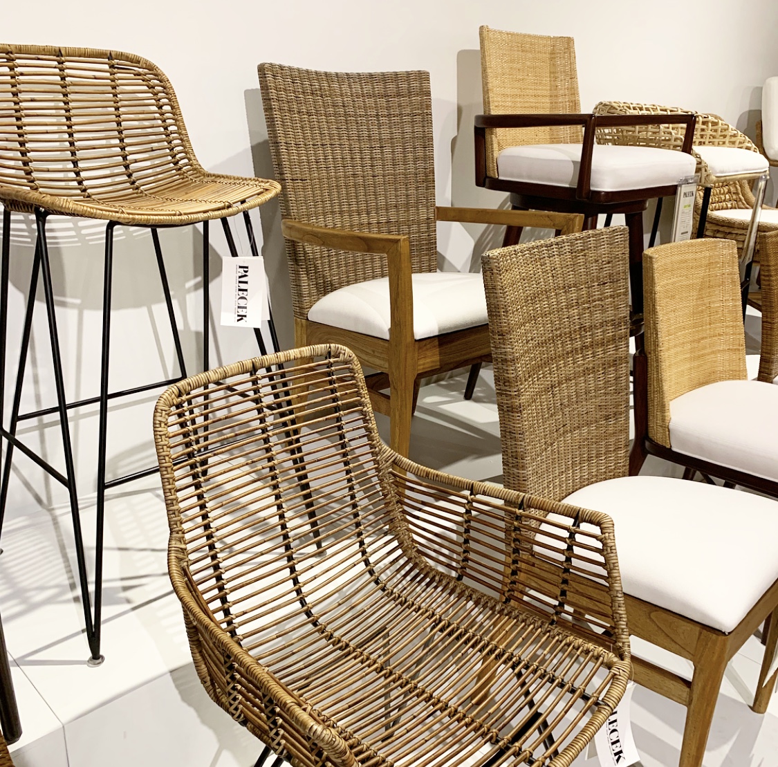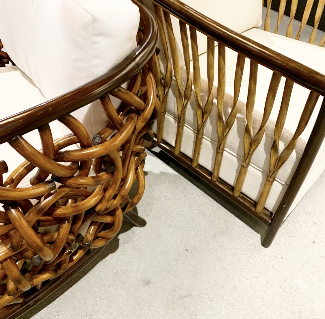 But it wasn’t only on the ceiling– chairs stood out with unique woven frames in all shapes and amazing detail– even sofas and bed frames! Take a peek!