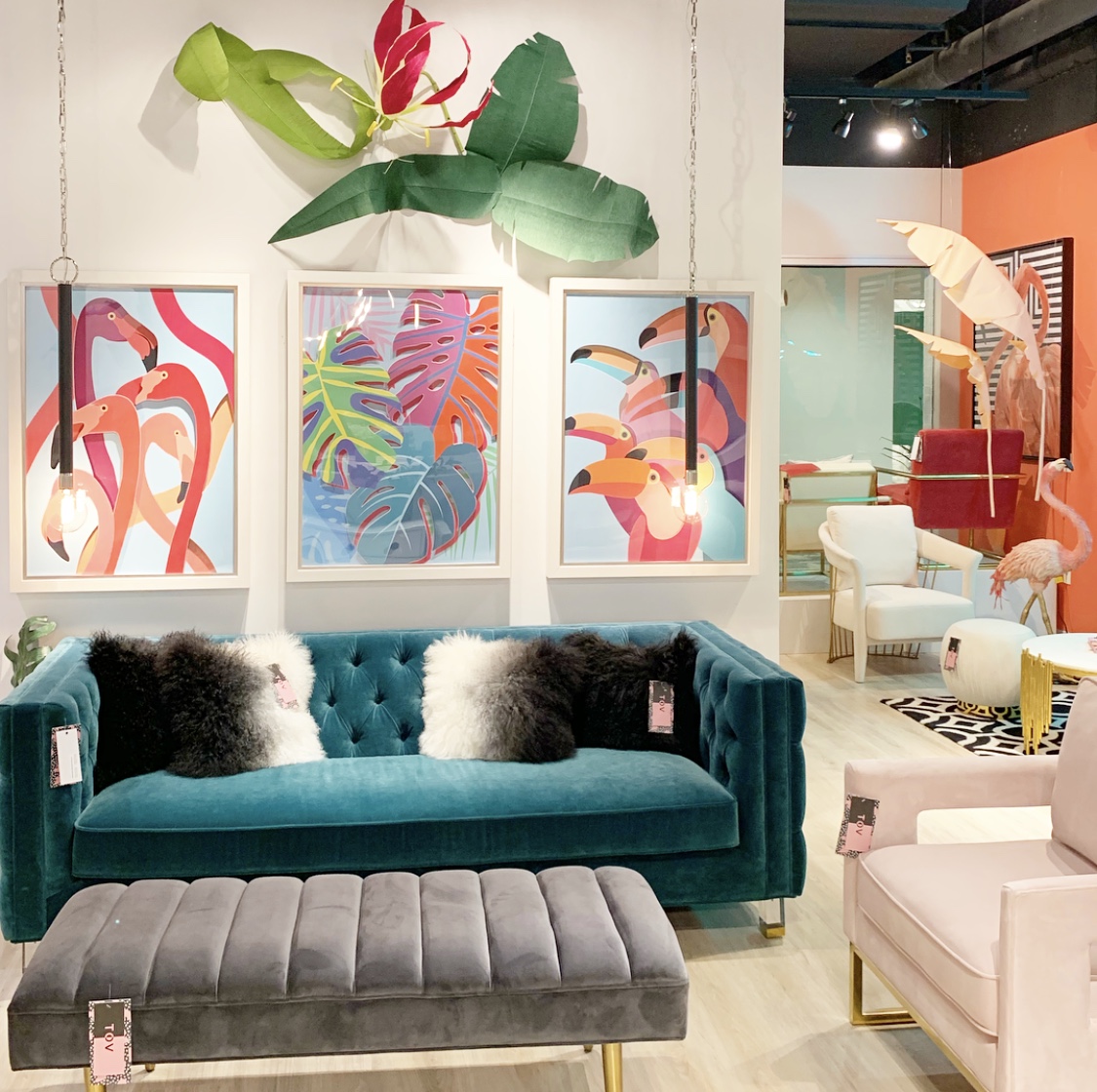 Hallelujah! My color-loving heart was so happy to see color back in action! Furniture in gorgeous greens, soft aquas and blush pinks, these beauties definitely make a statement. And I’m not just talking about fabrics. There were casegoods, chair frames and artwork that equally made their mark. Oversized floral rugs and larger than life murals– there are hundreds of color options to make any space lively– just take your pick!