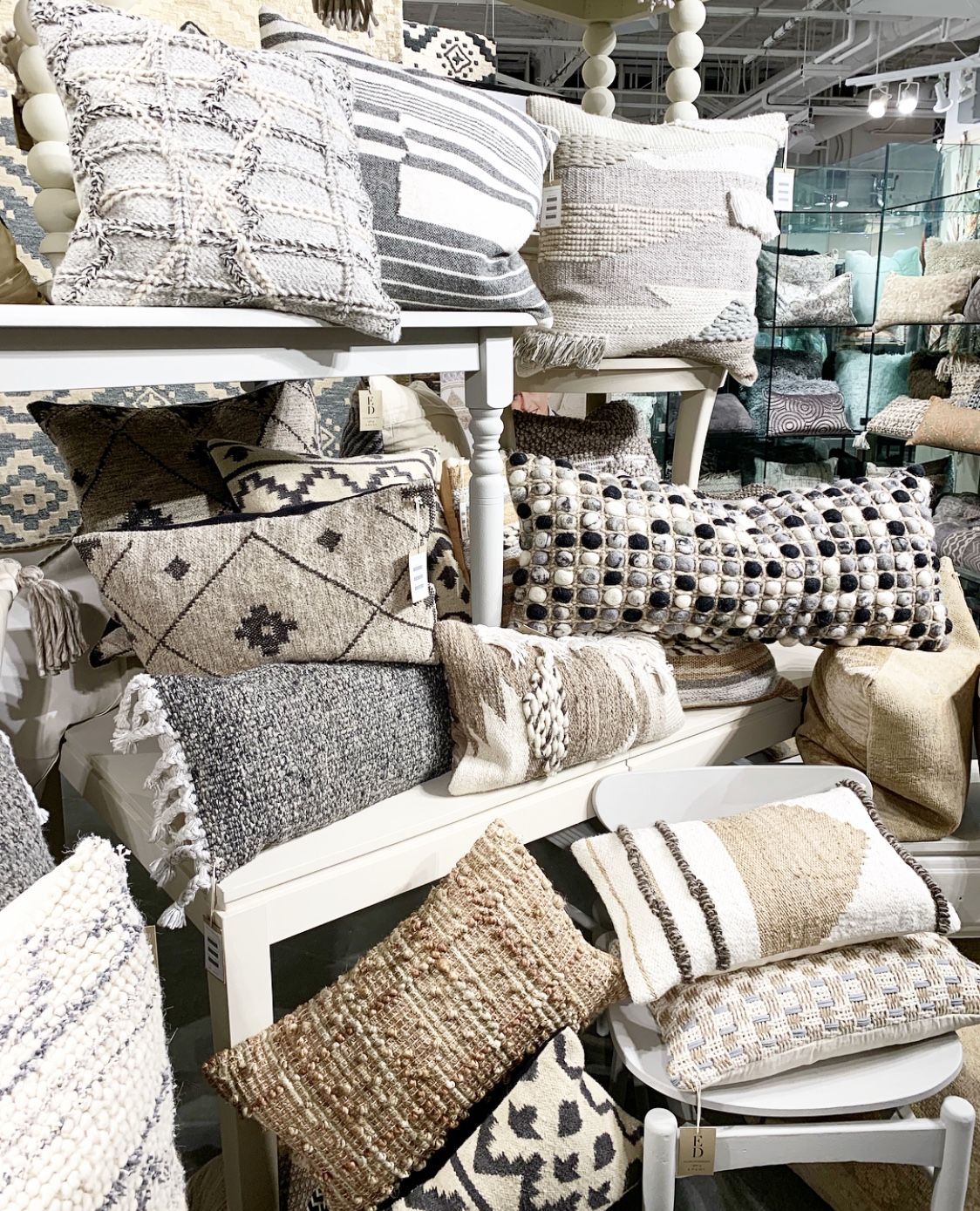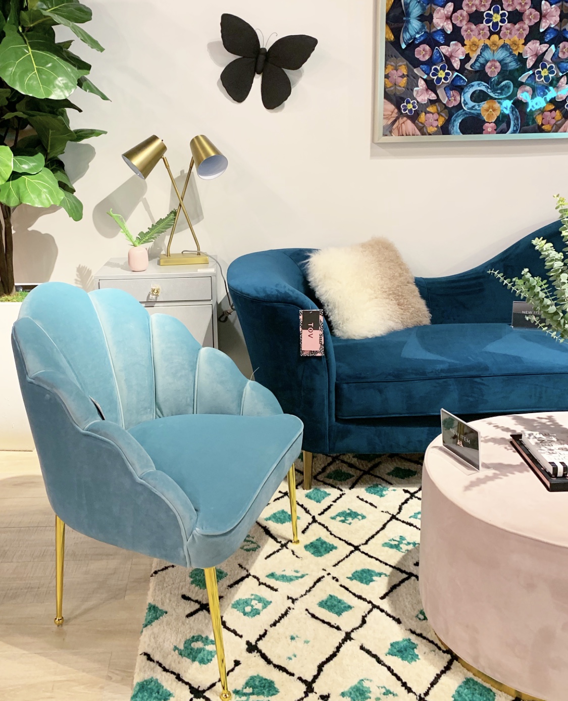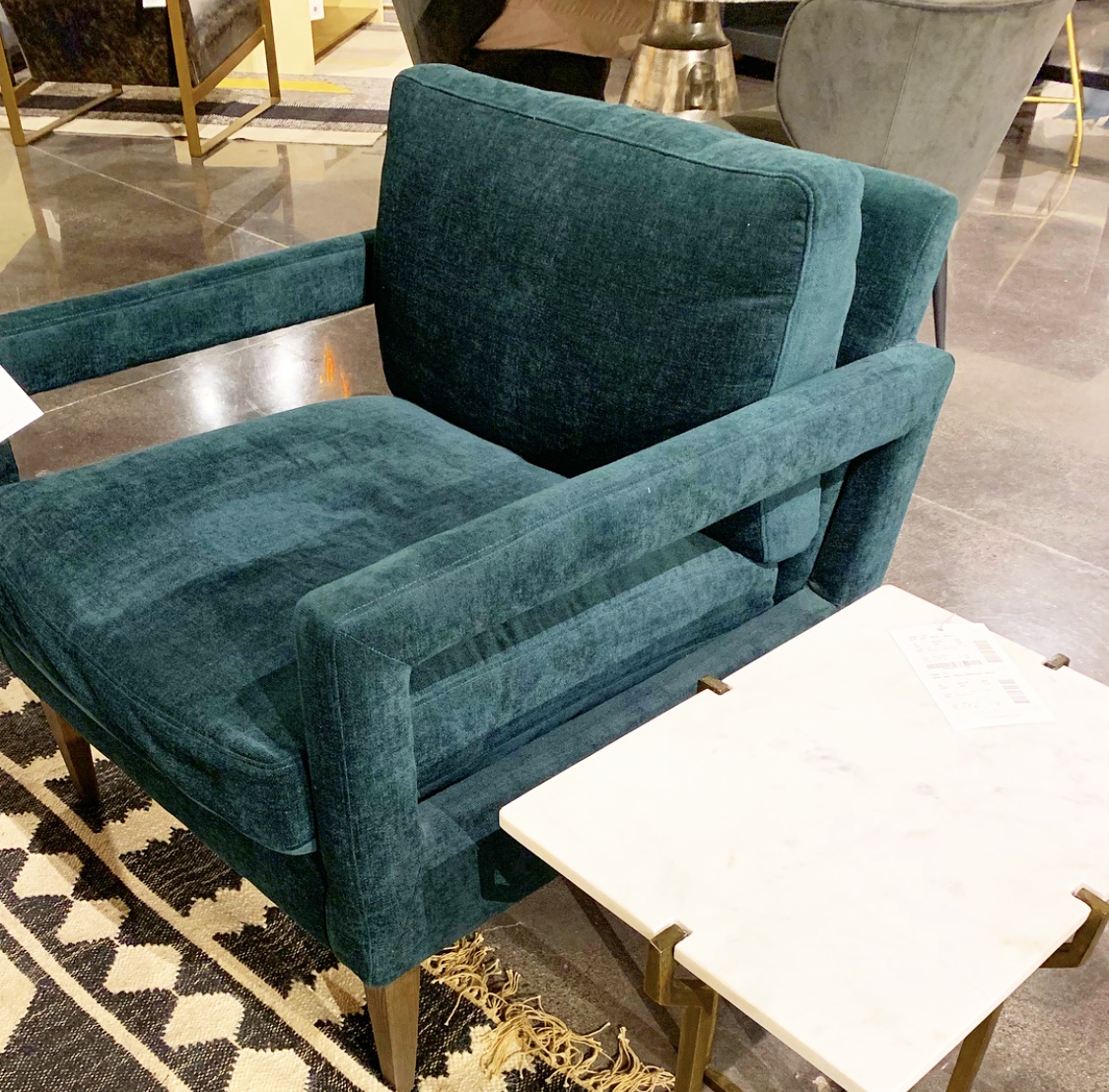 Also ev.er.y.where! Those greens, aquas and blushes I mentioned above? Cut velvet. Almost every single one. Sofas, chairs, benches, ottomans, and pillows. Gorgeous to look at and soft to the touch, this fabric is on everyone’s list. Its subtle sophistication makes it an instant winner!